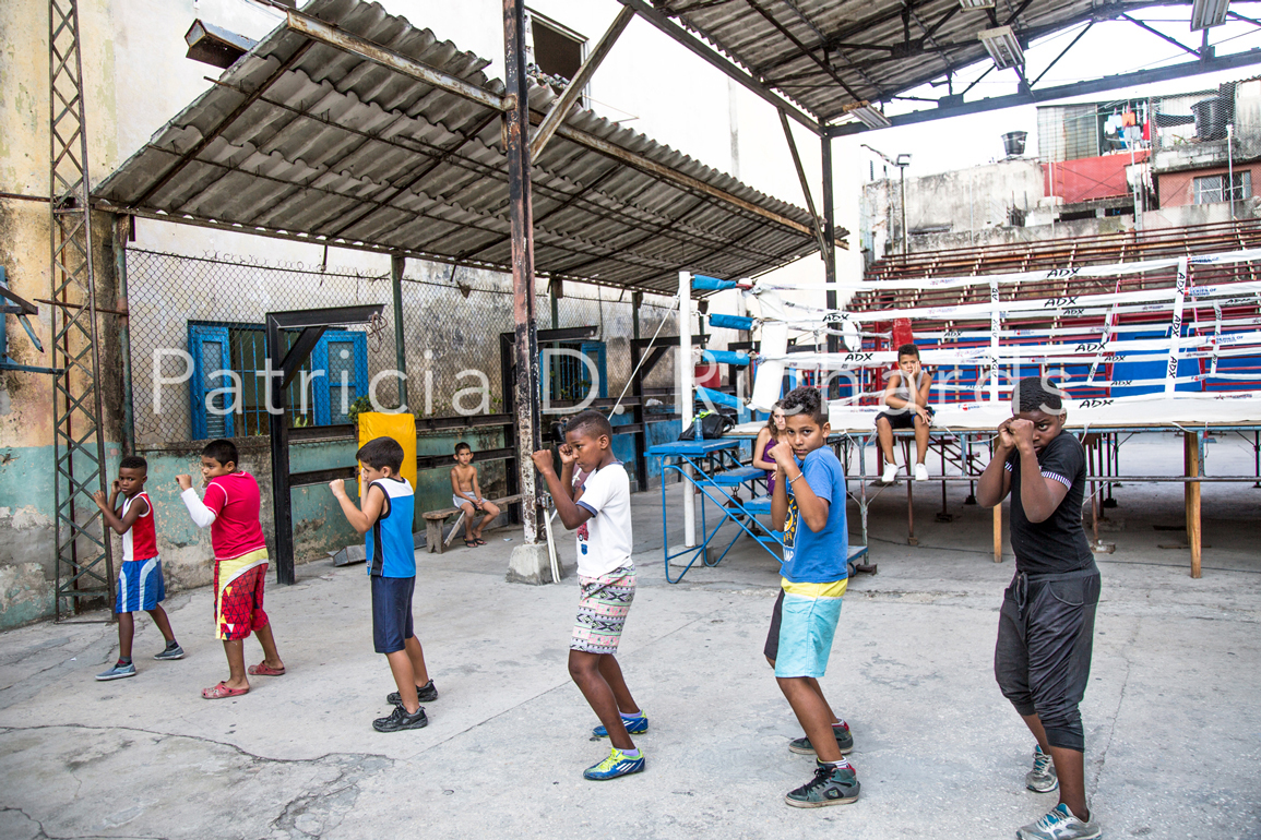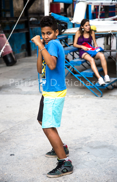Cuba, a street in Havana, is like all streets in Havana, fascinating. I found it quite by accident while exploring the city and decided to follow it. The irony of being on a street named ‘Cuba’ while in Cuba was not lost on me. As I neared the end of Cuba, I discovered a bonus—a boxing school. I had not set out to photograph boxing hopefuls on this day, or to find the school that in fact I didn’t know existed. However, from my vantage point outside I could see kids practicing in the open air. I went in.