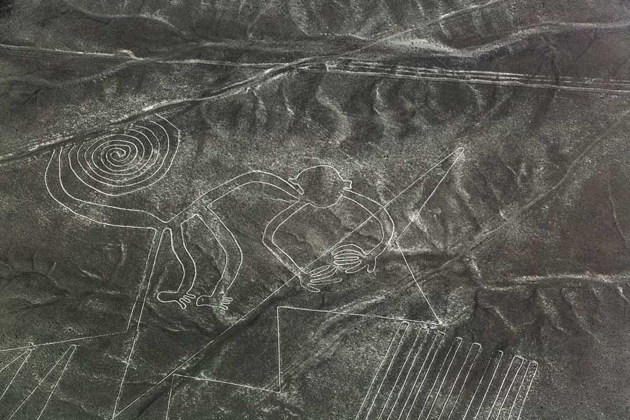 It is thought that the initial sets of lines were geometric designs that over time became more intricate and shapes and figures emerged. Because this culture lived roughly 800 years one can see lines made over other lines, etc. Some of the straight lines extend thirty miles…Experts believed they formed the largest astronomical calendar ever created. However, like Easter Island (Rapa Nui) this culture left no written history so everything is open to speculation.